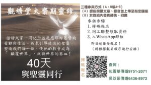 (希 12:1-3)1 我們既有這許多的見證人,如同雲彩圍着我們,就當放下各樣的重擔,脫去容易纏累我們的罪,存心忍耐,奔那擺在我們前頭的路程, 2 仰望為我們信心創始成終的耶穌。他因那擺在前面的喜樂,就輕看羞辱,忍受了十字架的苦難,便坐在神寶座的右邊。 3 那忍受罪人這樣頂撞的,你們要思想,免得疲倦灰心。